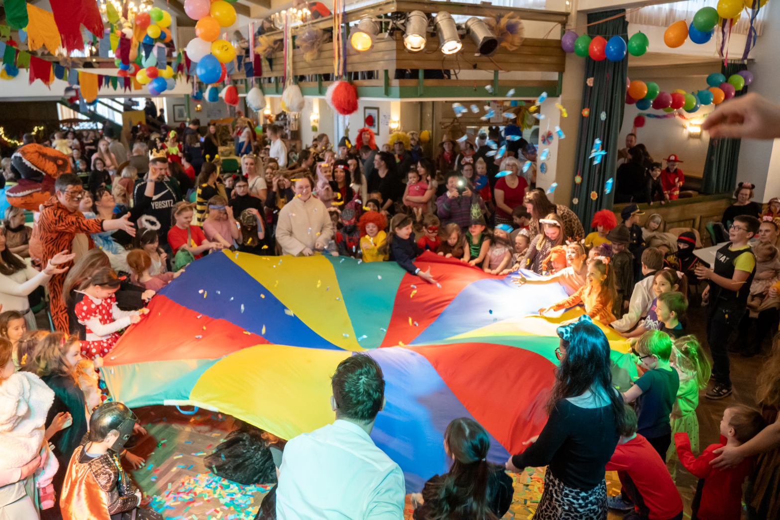 Bereits am Nachmittag füllten viele Kinder den Saal beim Gasthaus zum goldenen Hirschen und waren mit Freude beim abwechslungsreichen Programm dabei. Sonja Seisenbacher und Thomas Baumgartner führten durch den Nachmittag mit bunten Spielen und lustigen Tanzeinlagen, begleitet vom stimmungsmachenden DJ Wahnsinn. Der beliebte Zuckerlregen begeisterte das Publikum und auch die gratis Krapfen sorgten wieder für strahlende Kinderaugen.